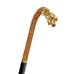 At its forefront, this walking cane features a stunning array of red and orange crystals. The vibrant colors create a dazzling effect, making it a standout piece that captures attention and complements any ensemble.