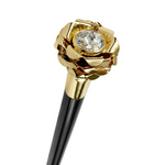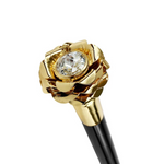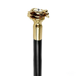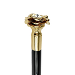 At its forefront, this walking stick features a golden brass handle adorned with a delicately crafted rose. The intricate design of the rose adds a touch of elegance and romance, making it a standout piece that enhances any attire.