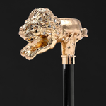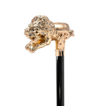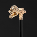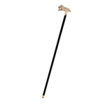 At its forefront, the walking stick features a handle sculpted into a dynamic running lion, symbolizing strength and majesty. Adorned with shimmering crystals, the lion handle exudes luxury and captivates with its intricate detailing and sparkling accents.