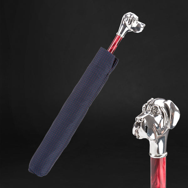 Step into playful elegance with our Unique Silver Labrador Handle Folding Polka Dot Blue Umbrella, where charm meets functionality. The silver Labrador handle is a delightful touch, adding a playful and lovable element to your rainy-day ensemble. Embrace the whimsical with an accessory that not only shields you from the rain but also showcases your love for charming and fashionable style. Walk confidently through the rain, letting your umbrella be a conversation starter that mirrors your unique and delightful personality.