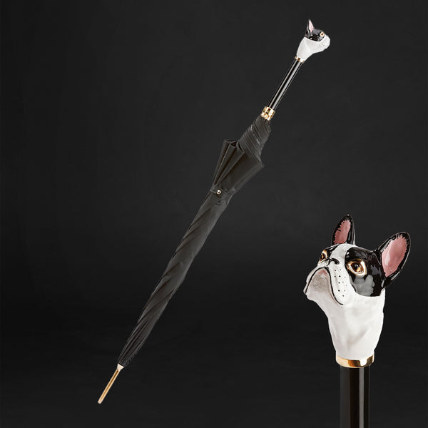 Stylish canine companion: designer french bulldog handle black umbrella