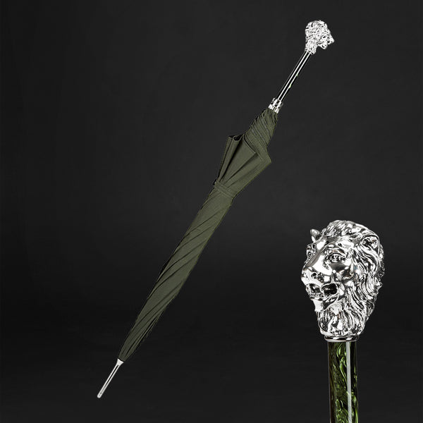 Green Umbrella, Silver Lion Handle Umbrella For Men