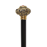 At its forefront, the walking cane features a golden knob with a handle adorned with a radiant red crystal. The combination of the golden knob and the sparkling red crystal adds a touch of opulence and elegance to the cane, making it a standout piece that commands attention.