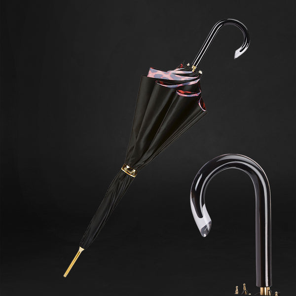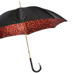 Crafted with precision and attention to detail, this double cloth umbrella features a chic red exterior paired with a distinctive leopard print interior. The designer elements make it a statement piece for women who appreciate both sophisticated style and a hint of the exotic.