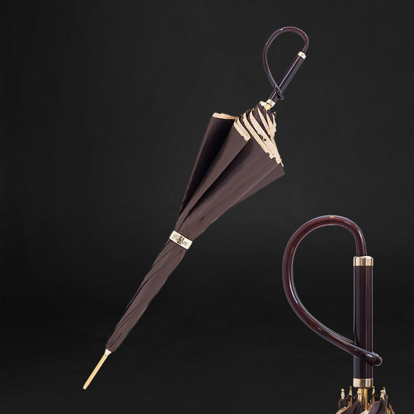 Crafted with precision and attention to detail, this double cloth umbrella features a chic brown speckled pattern, adding a touch of elegance to your rainy day ensemble. The designer elements make it a statement piece for women who appreciate both fashion-forward style and practicality.