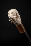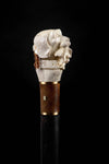 Walking Cane Bone Dog Hand carved Bone Cane Knob, Signed by Artist