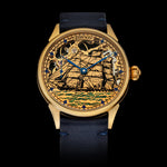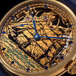 The Flagman & Co. "Traveler" Skeleton Watch is a truly unique timepiece, showcasing hand-engraved details by a master jeweler. This exquisite watch is a blend of traditional craftsmanship and precision mechanics, making it a perfect choice for collectors and enthusiasts.
