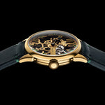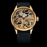 Produced in a small edition of only 10 pieces, this marriage watch features a meticulously hand-engraved and skeletonized movement, showcasing the beauty of its mechanical precision. The dial is engraved and hand-painted, adding a distinct touch of sophistication.