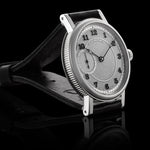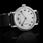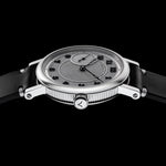 The dial is created using a unique laser-cutting method, followed by detailed hand-finishing and coated with high-grade silver, ensuring a sophisticated and polished look.