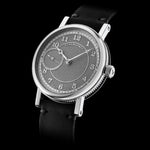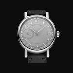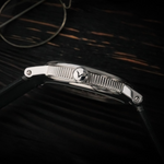 The dial is created using a unique laser-cutting method, followed by intricate finishing processes, and is then coated with high-grade silver, providing a sleek, polished look that elevates the watch’s design.