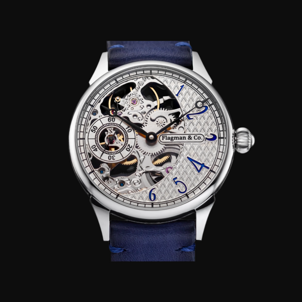 The Flagman & Co. "Rise of Steampunk" Skeleton Watch is a stunning, hand-engraved timepiece that blends intricate mechanics with timeless artistry. Designed for watch enthusiasts and collectors, this limited-edition watch is available in only 100 pieces, making it a rare and prestigious addition to any collection.