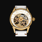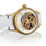 This handmade skeleton watch is a testament to fine craftsmanship and timeless design. A true marriage watch, it is produced in an exclusive limited edition of only 10 pieces, making it a rare and collectible timepiece. Designed in an Art Deco style, this watch is a perfect blend of elegance and mechanical precision, suitable for both men and women.