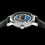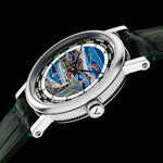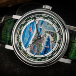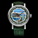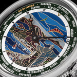 The Flagman & Co. "Rio de Janeiro" World Time Watch is a handcrafted luxury timepiece, inspired by an unforgettable journey along the coastline of Rio de Janeiro. Designed and crafted by master engravers and jewelers, this exquisite watch features a dial meticulously filled with fine jewelry enamel and kiln-fired for a lasting, vibrant finish.