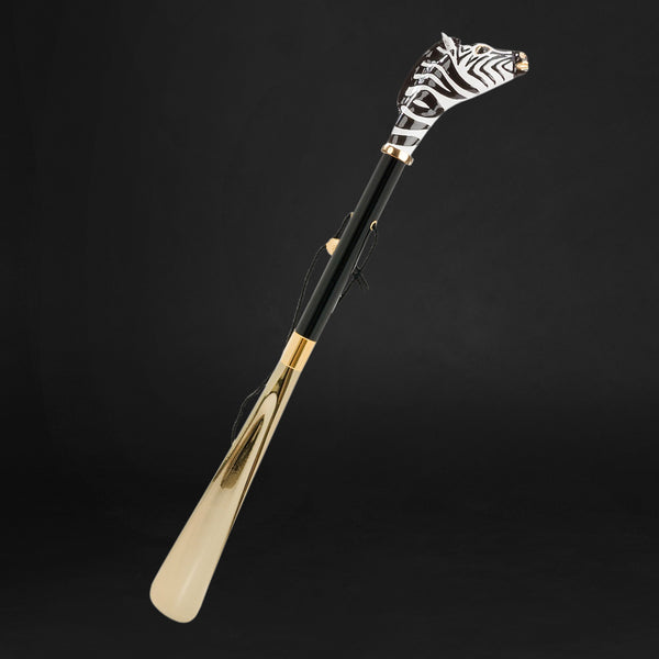 Enameled Brass Handle: The Zebra Fancy Long Shoe Horn features an exquisite enameled brass handle that not only offers a secure and comfortable grip but also showcases a distinctive zebra pattern. It's a stylish statement piece that not only assists with your shoes but also complements your taste for fashion.