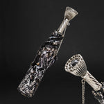 The canopy, illustrated with a dazzling jewels print, captures the eye with its vibrant colors and intricate designs, mimicking the splendor of precious gemstones. This striking visual motif is more than just an artistic expression; it symbolizes luxury and elegance, making this umbrella a perfect complement to any ensemble, adding a touch of glamour to even the dreariest days.