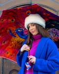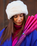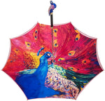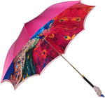 Introducing our Women's Umbrella from the Premium Collection, featuring a stunning gradient magenta satin canopy that effortlessly transitions from light to deep hues. The interior showcases a luxurious peacock soft print on satin fabric, adding an artistic and vibrant touch to this elegant accessory. Perfectly combining style and sophistication, this umbrella is designed for the modern woman who appreciates both beauty and functionality.