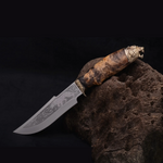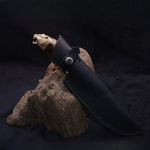 Included with this remarkable knife is a delicate genuine leather sheath, complete with a belt fastening for convenient carry. For those seeking an even more distinguished presentation, the option to encase the knife in a gift case crafted from natural pine wood is available.