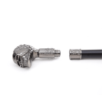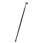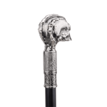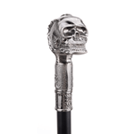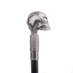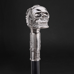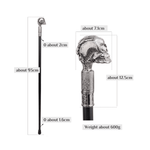 Introducing the Steampunk Designer Skull Handle Walking Stick, perfect for cosplay enthusiasts and those who appreciate unique style. This walking stick features a striking skull handle that embodies the essence of steampunk design. Crafted from steel and finished with a practical rubber tip, it combines both aesthetics and functionality. With a total length of 36 inches, it offers a comfortable height for use. Each walking stick is handmade, resulting in unique variations in the shade color or texture of the wood. Please note that the shade color or texture of the wood may differ from the photo, as each cane is handmade and unique.