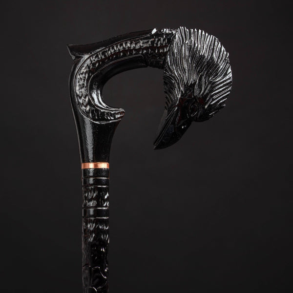 Black Raven Walking Cane Hand Carved Wood Birds Decorative Walking Stick