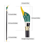 Elevate your style with this unique and elegant green duck head wooden walking stick. Crafted with a single, sturdy joint for enhanced durability, this 95cm (37.4 inch) cane is perfect for a variety of occasions. Whether you're completing a cosplay outfit (steampunk, historical reenactment, etc.), adding to your collection, or searching for a distinctive gift, this walking stick makes a statement.