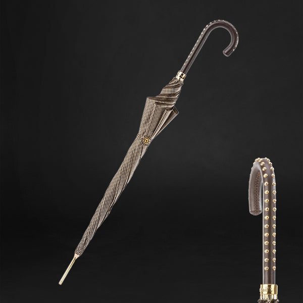 Introducing the Classic Brown Umbrella with Studded Leather Handle for Women—a timeless and sophisticated accessory that seamlessly combines classic design with a touch of edgy elegance.