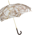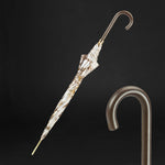 Crafted with precision and attention to detail, this umbrella features an ivory canopy adorned with a chic bridle print, creating a sophisticated and timeless look. The leather handle adds a touch of luxury and enhances the overall elegance of the design.