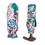 The canopy of this umbrella blooms with a beautiful flowered print, a garden of vibrant colors and intricate designs that promise to brighten even the greyest of days. Each petal and leaf is rendered with exquisite detail, creating a canopy that's not just a shield against the rain, but a statement of style.