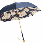 Introducing the Luxury Elegant Navy Bridles Umbrella with Jeweled Handle for Lady—a luxurious and sophisticated accessory that seamlessly combines a deep navy hue with an exquisite bridle print and a jeweled handle.