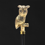Enhance your elegance with our 24K Gold Plated Walking Cane, featuring a charming owl perched on a branch and adorned with two sparkling Swarovski crystals. This luxurious walking stick, handcrafted in Italy, includes a black lacquered wood shaft with a rubber tip for added stability. Measuring 92cm (36.2in) in length, it comes beautifully packaged in a gift box, making it an exquisite gift or a stylish personal accessory. Crafted from resin, crystal, and PU, it perfectly combines durability and sophistication.