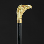 At its forefront, the walking stick features a handle adorned with a majestic eagle motif, plated in radiant 24K gold. The intricate detailing of the eagle adds a touch of regal charm and sophistication, making it a standout piece that commands attention.