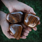 The handle is made of natural Tiger iron stone. Tiger Iron is a special combination of stones that can only be found in Western Australia. The stone consists of banded layers of Hematite, Red Jasper, and Tiger Eye. Tiger Iron is one of the oldest stones we’ve ever worked with, being formed more than 2.2 billion years ago. This unique stone was formed by Iron bearing Quartz (Tiger Eye & Jasper) replacing the mineral Crocidolite. The name derives from the inclusion of Iron and Tiger Eye, with Tiger Eye and Red Jasper being members of the Quartz family.