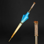 Crafted in collaboration with Debbie Wingham, renowned creator of the world’s most extravagant objets d’art, this exquisite limited edition umbrella and parasol blends haute couture elegance with everyday functionality. It offers a rare opportunity to own a piece designed by a master of elite craftsmanship at an accessible price point.
