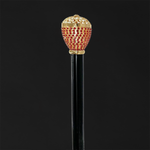 At its forefront, this walking stick features a knob handle encrusted with radiant red crystals, meticulously arranged to create a dazzling display of brilliance. The vibrant hue of the crystals adds a touch of glamour and sophistication, making this walking stick a standout piece that captures attention.