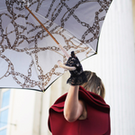 Chains Printed Interior: Open the umbrella to reveal a bold and stylish chains printed interior. The eye-catching print adds a touch of edgy elegance to your rainy day ensemble, making it more than just a practical accessory but a fashion statement.