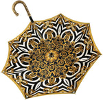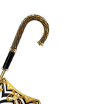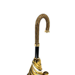 Introducing our Handcrafted Women's Umbrella, featuring a radiant gold yellow exterior canopy that captures attention with its vibrant hue. The umbrella is elegantly finished with a gold-plated handle adorned with black rhinestones, adding a touch of luxury and sophistication. Showcasing a fantastic new design, it combines modern style with timeless elegance. The umbrella is neatly furled with a beautiful gold ring, eliminating the need for a tie band and enhancing its refined appearance. Ideal for those who appreciate exquisite craftsmanship and distinctive design.