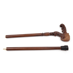 Explore the charm and functionality of our Folding Antique Style Elephant Wood Walking Cane, featuring an ergonomic handle for comfortable use. This cane includes a hand-carved elephant design, adding a touch of uniqueness to your collection. Each cane is individually crafted, leading to variations in shade color and texture. Designed for practicality, it splits into two parts for easy storage and transport. With a total length of 36 inches, it serves both decorative and functional purposes. Please note that the shade color or texture of the wood may differ from the photo, as each cane is handmade and unique.