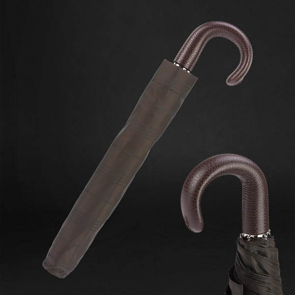 Introducing our High-Quality Brown Check Umbrella with Leather Handle, a timeless accessory that seamlessly blends classic checks with modern style. The brown check pattern exudes sophistication, while the leather handle adds a touch of luxury. Elevate your rainy days with an umbrella that stands as a symbol of timeless elegance.