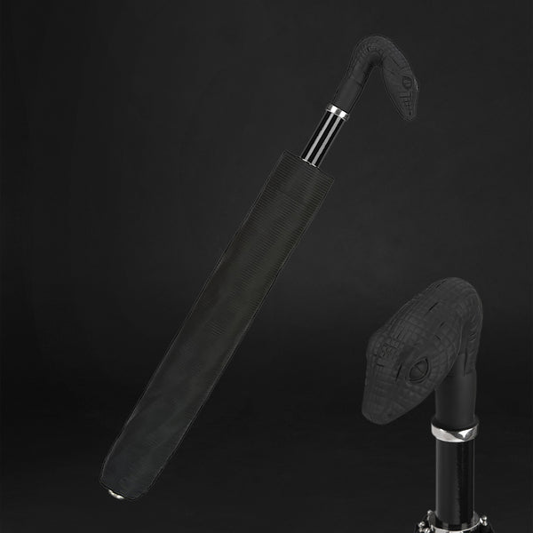 Crafted with precision, our Black Folding Umbrella is a testament to uncompromising quality. The rubberized brass snake handle, aside from being visually striking, offers a comfortable grip. The black canopy, paired with robust construction, ensures durability without sacrificing style. Embrace an umbrella that blends fashion with function seamlessly.