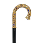 At its forefront, this walking cane features a sleek design accented by an array of multicolor crystals. Each crystal sparkles with its own unique hue, creating a vibrant and eye-catching display that adds a touch of glamour to your ensemble.