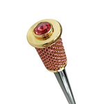 At its forefront, this walking stick features shimmering pink crystals adorning its shaft. The soft hue of the crystals adds a touch of femininity and grace, making it a standout piece that enhances any ensemble with its chic allure.