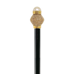 At its forefront, this walking stick features a beautifully designed knob adorned with shimmering crystals and a lustrous pearl. The combination of crystals and pearl adds a touch of opulence and sophistication, creating a stunning focal point that captures attention and admiration.