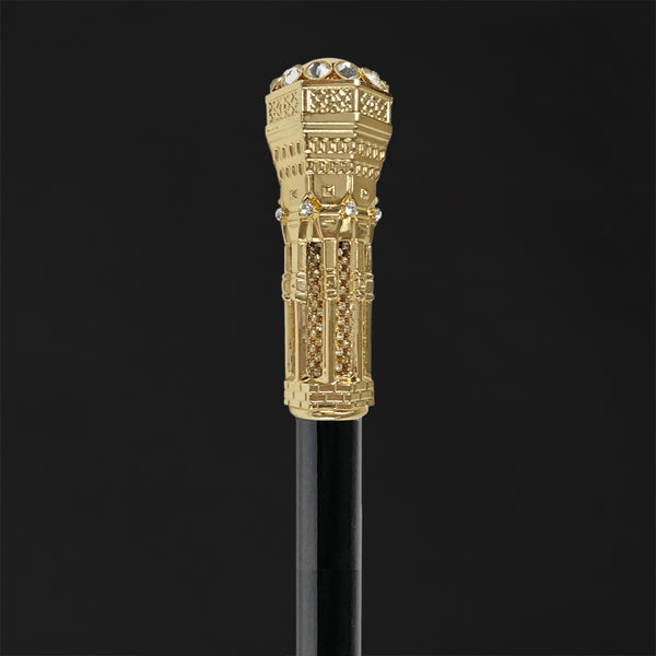 Introducing the Golden Tower Walking Stick with White Crystals – an exquisite accessory meticulously crafted to elevate your style with its luxurious design and sparkling details. This walking stick is the epitome of elegance and sophistication, making it a standout piece for any occasion.
