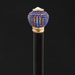 At its forefront, this walking cane showcases handcrafted sapphire crystals, meticulously arranged to create a dazzling display of brilliance. The deep blue hue of the sapphire crystals adds a touch of opulence and allure, making this cane a standout accessory that commands attention and admiration.