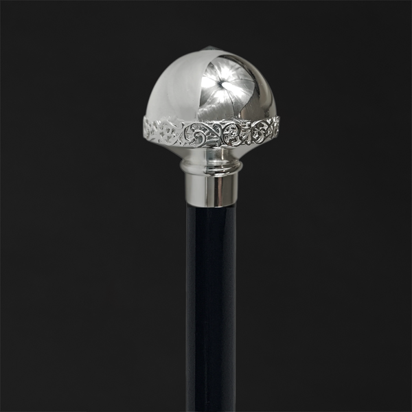At its pinnacle, the walking stick features a silver-plated knob, adding a touch of refinement and prestige. The sleek and polished finish of the knob reflects light, enhancing its timeless appeal.