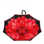 Let us introduce an exclusive umbrella designed for the discerning woman, featuring a unique ladybug handle and a double cloth exterior in vibrant red with a flowered interior. This accessory is not just a shield from the elements; it's a symbol of individuality and style.
