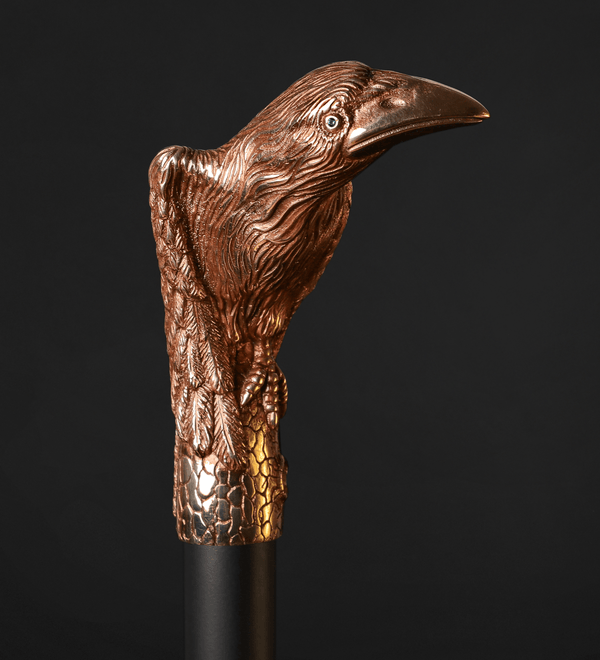 Luxury Crow Walking Stick with Blue Crystals, Ergonomic Handle, Artistic