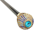 At its forefront, this walking cane features a stunning multicolor knob handle, intricately designed to catch and reflect light in a dazzling array of colors. The handle is plated with 24K gold, adding a touch of regal sophistication and making it a standout accessory that commands attention and admiration.