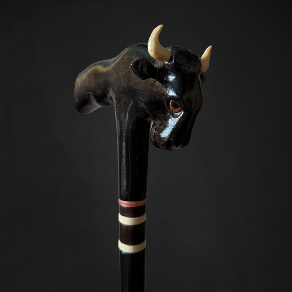 Bull Walking Stick, Walking Cane Hand Carved - Handmade