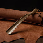 This wooden handle shoe horn is constructed of solid wood that fits your hand and foot comfortably. Unlike metal ones, wood's surface temperature is constant and moderate for our skin all year round, so in winter you can still enjoy cozy experience with this shoe horn!