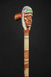 Native American Indian Walking Stick, adorned with an exquisitely carved Indian Chief Head. This unique and beautifully crafted cane combines practicality with artistic elegance, making it a remarkable accessory for both outdoor adventures and decorative purposes.